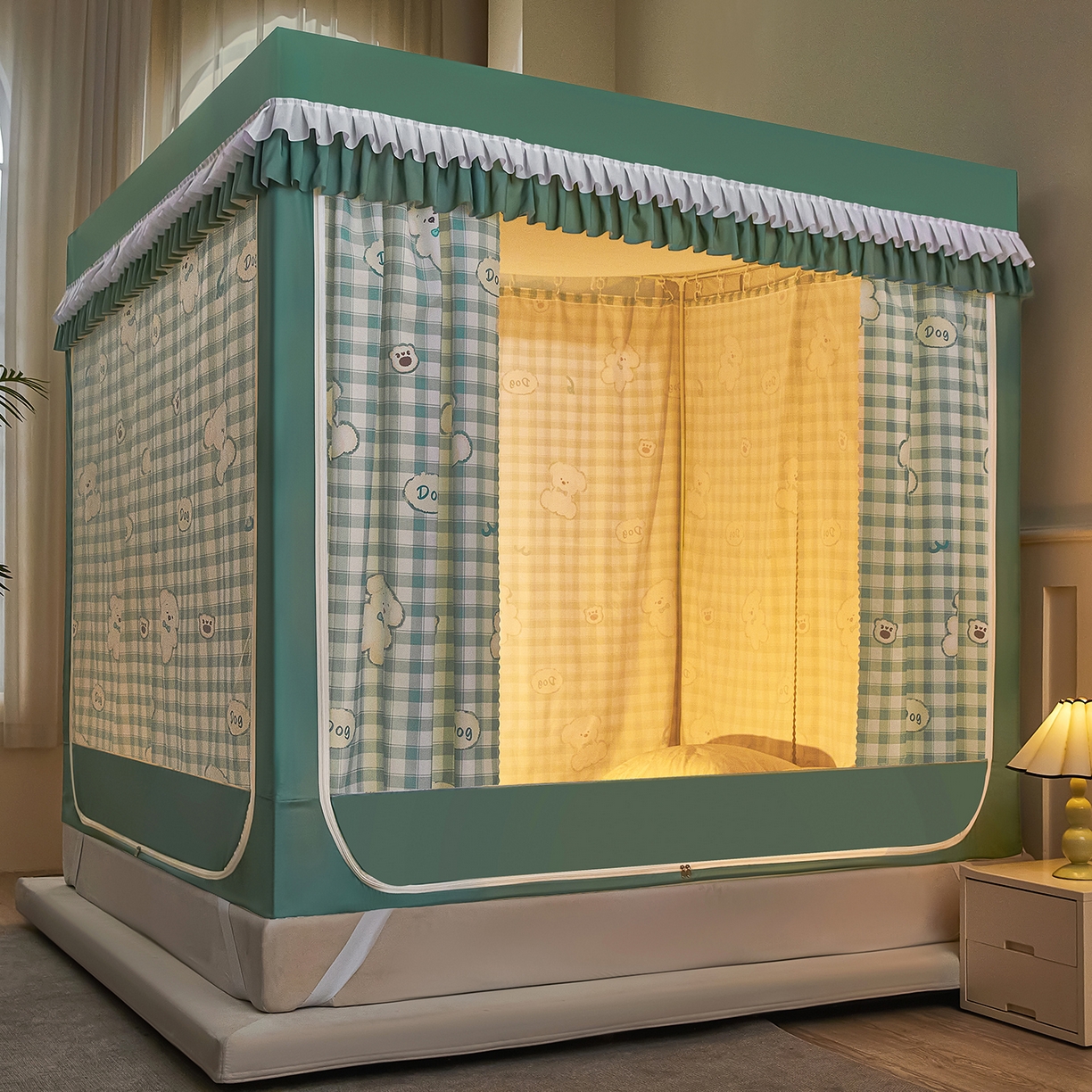 2025新款2604冬季保暖夹棉纯色遮光帘蚊帐全底回底双排储物袋