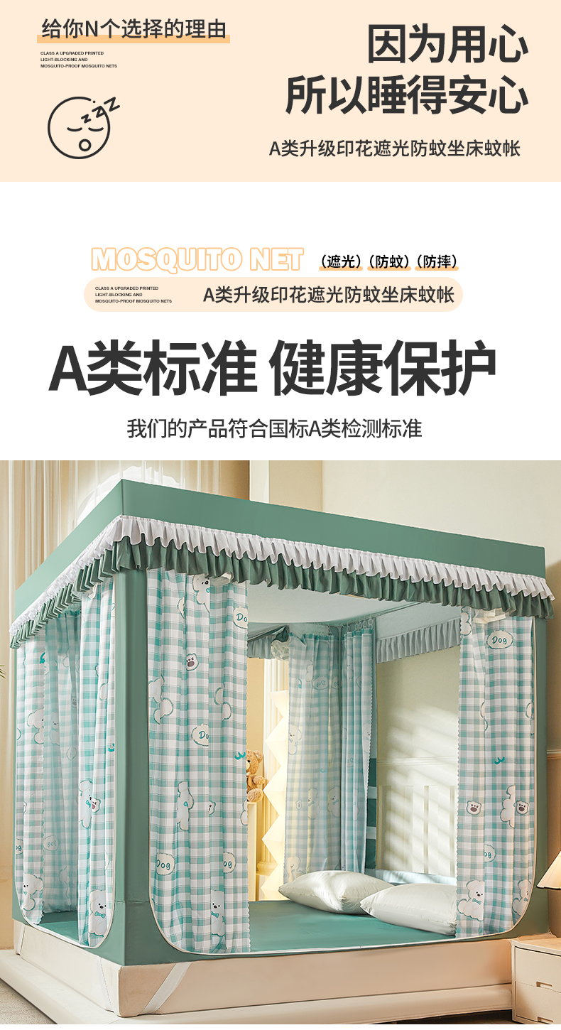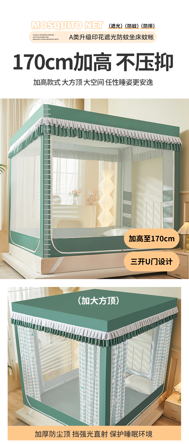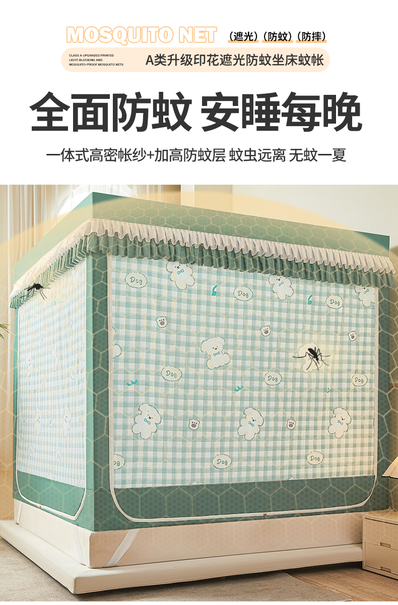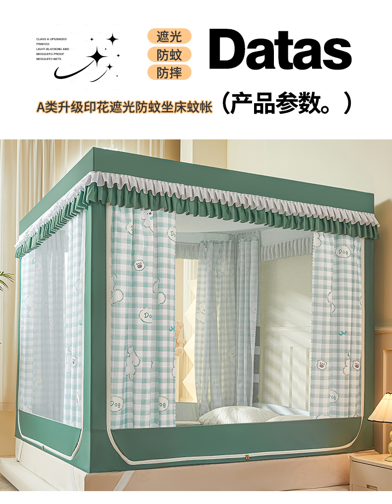 2025新款2520大版数码印花植绒环保五面强遮光学生蚊帐