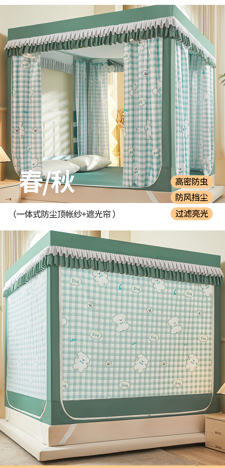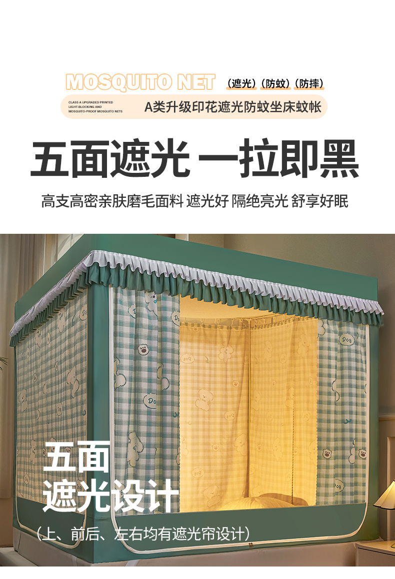 2024新款2415纳米环保加厚强遮光小清新学生蚊帐(自带靠墙帘)