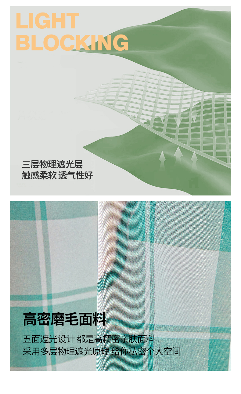2025新款2519款纯色植绒环保五面强遮光双轨铝合金学生导轨蚊帐