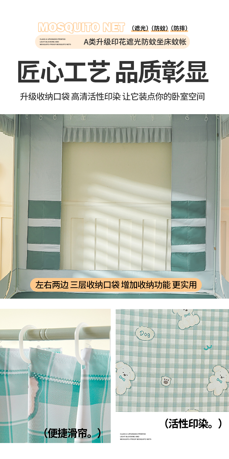 2024新款2416纳米环保加厚强遮光大版数码印花学生蚊帐(自带靠墙帘)