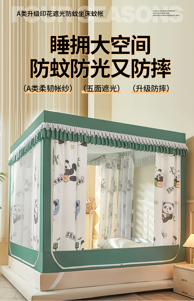2024新款大熊猫外穿杆防摔坐床蚊帐