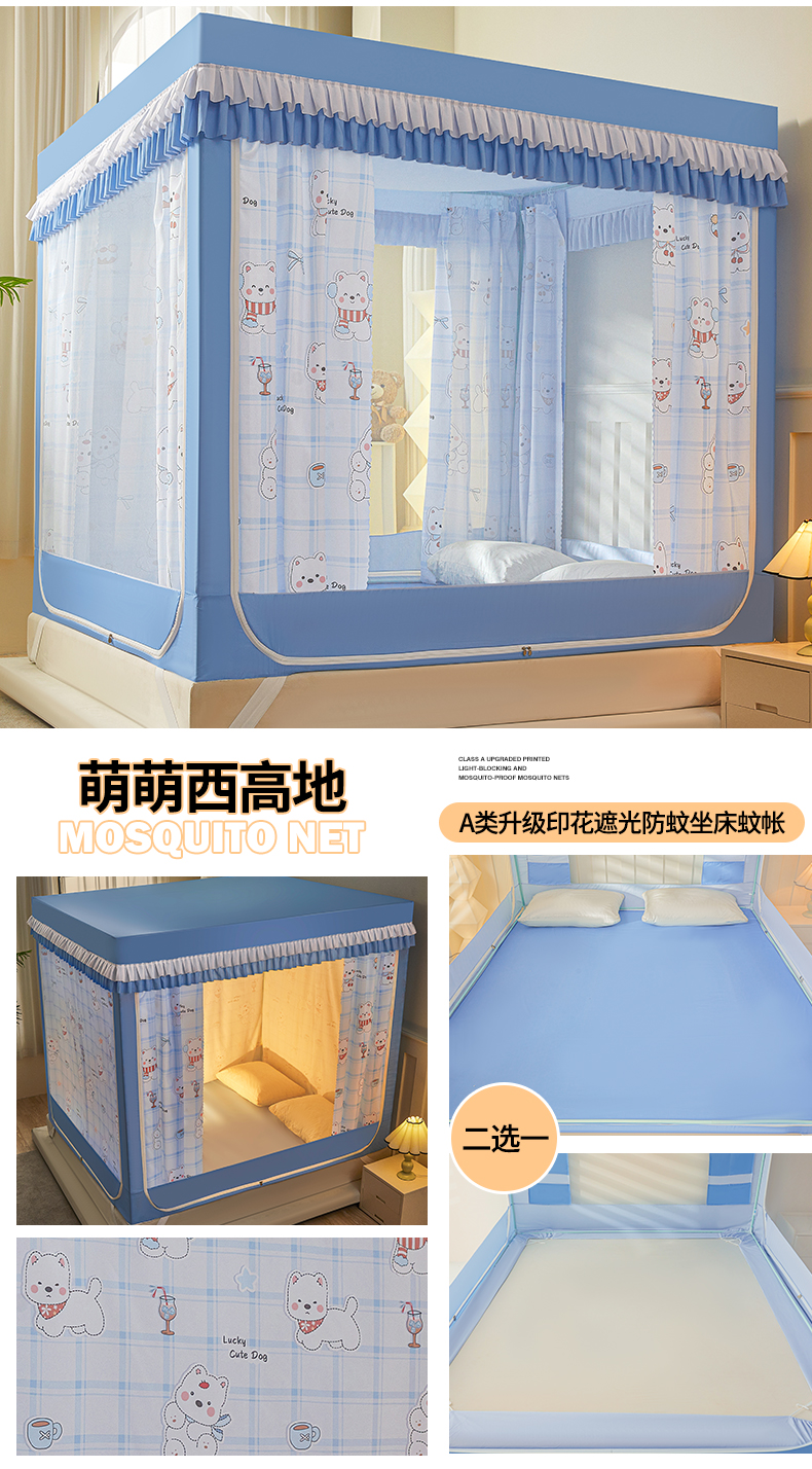 2024新款2416纳米环保加厚强遮光大版数码印花学生蚊帐(自带靠墙帘)