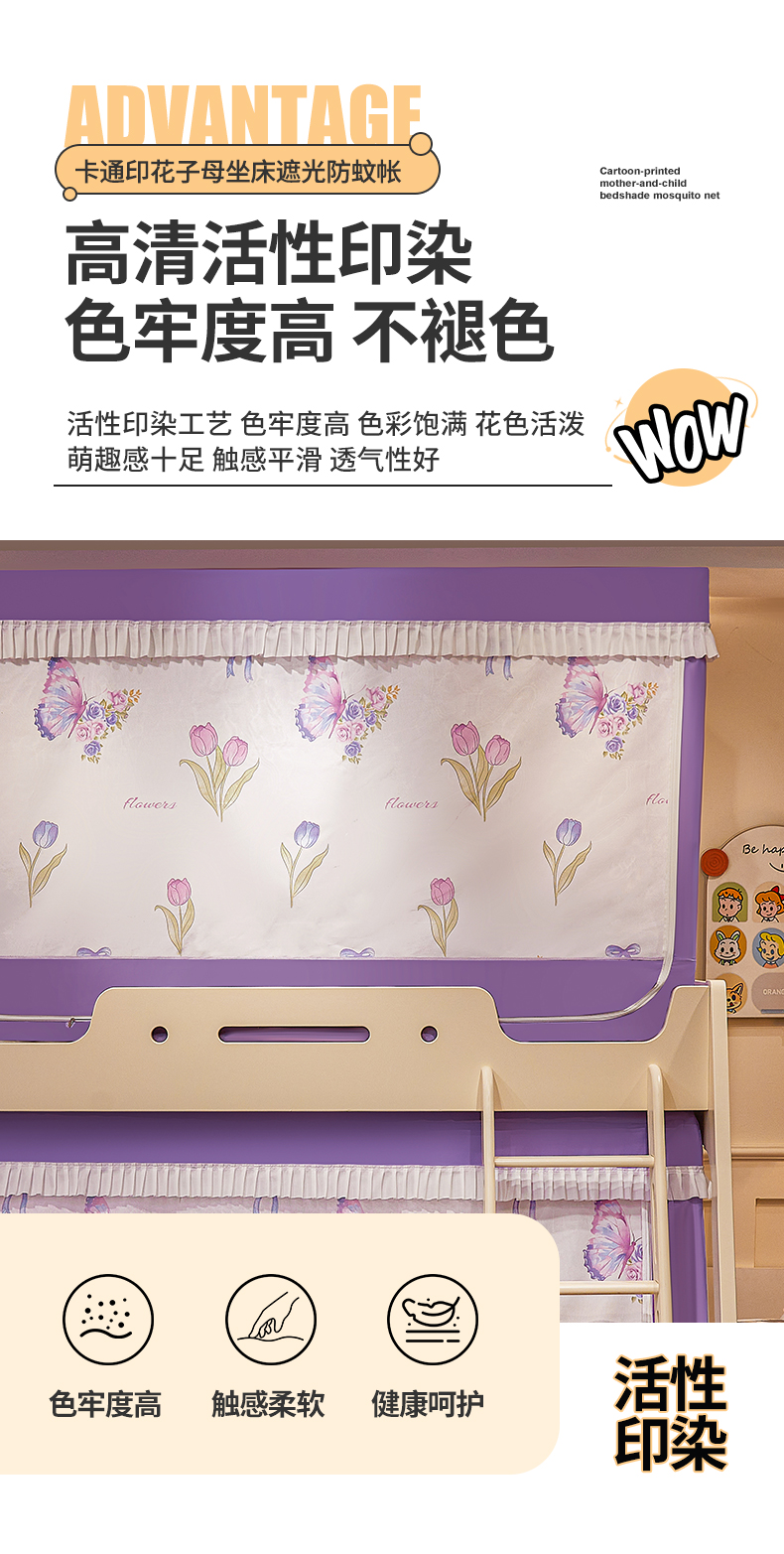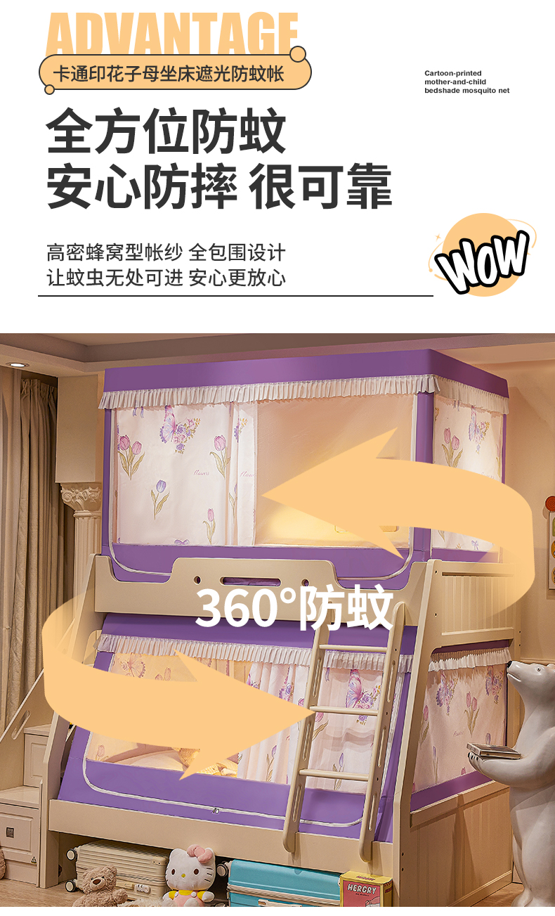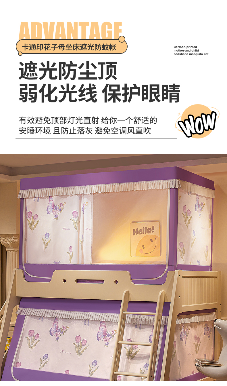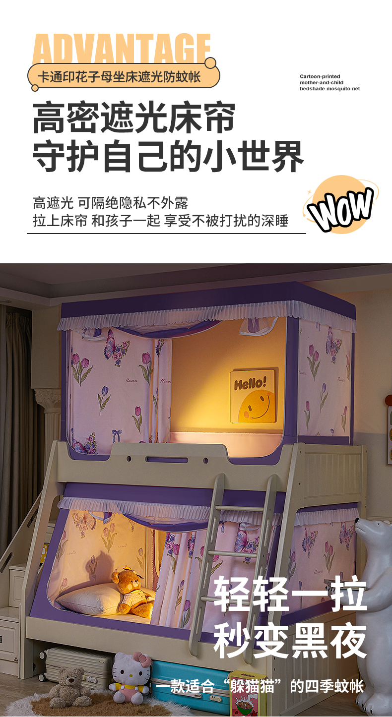 2024新款2407专版印花遮光帘上下铺子母蚊帐