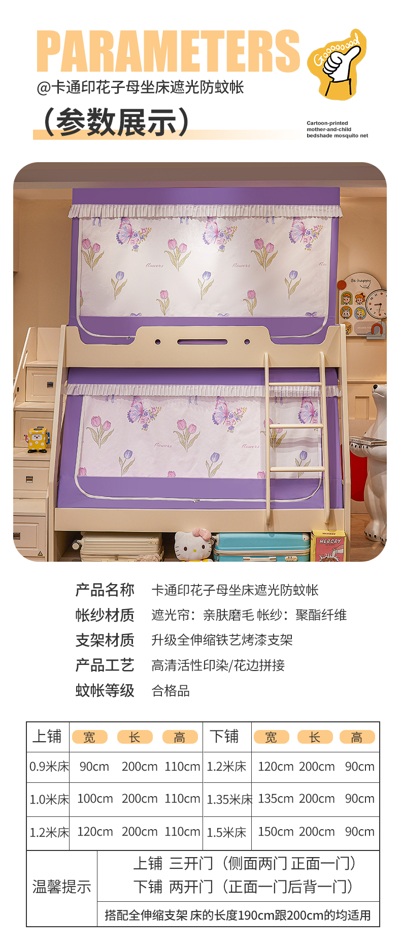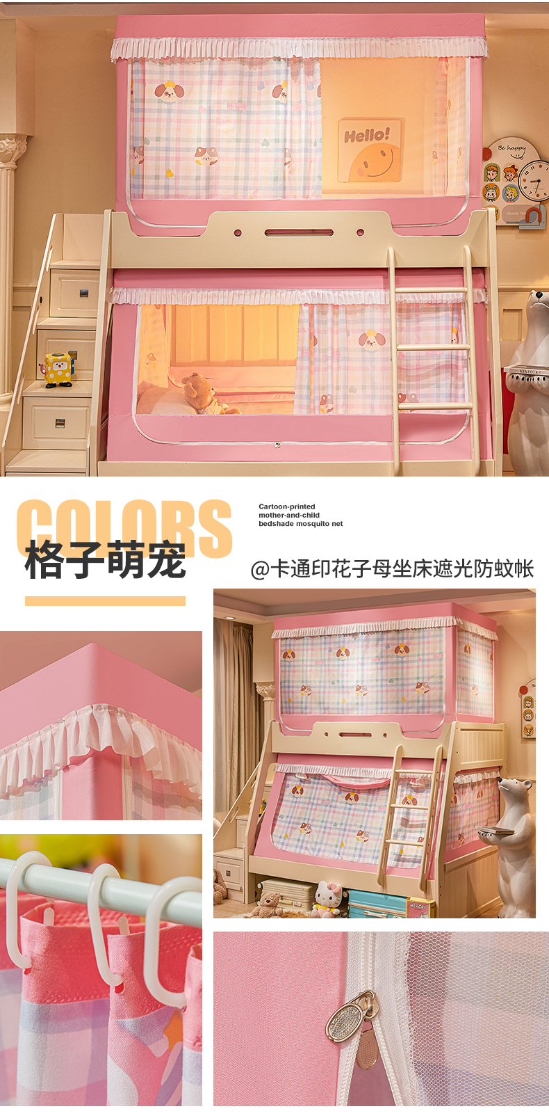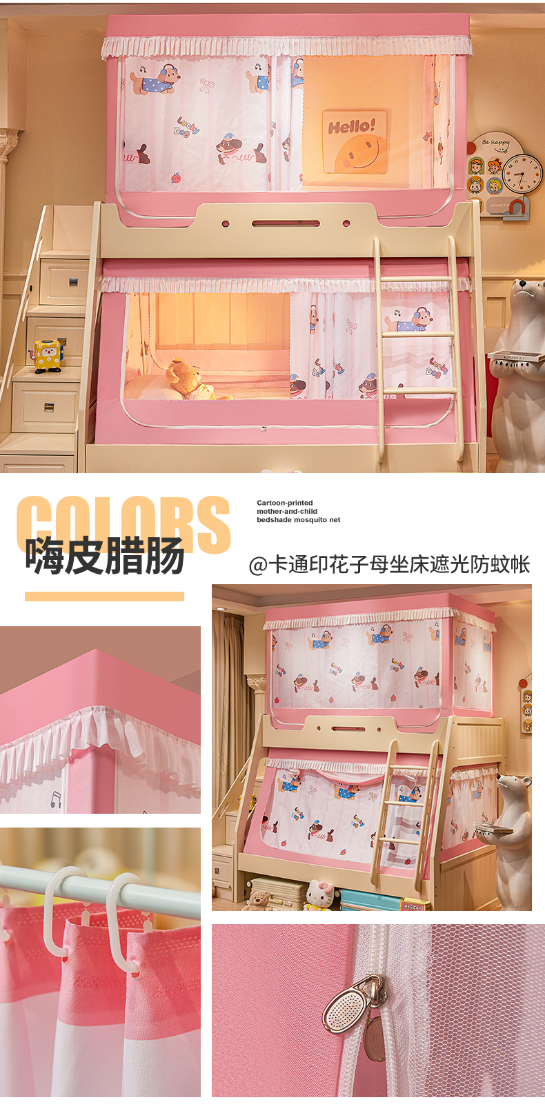 2024新款2407专版印花遮光帘上下铺子母蚊帐
