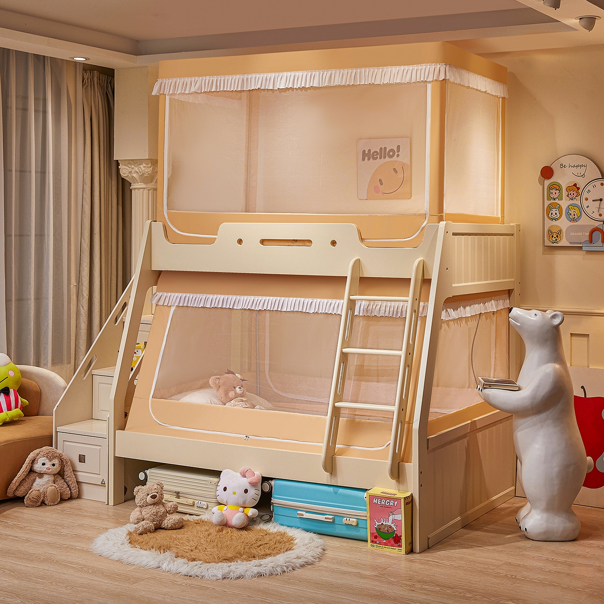 2025新款2511款小兔子烫画围栏级防摔外穿杆坐床蚊帐
