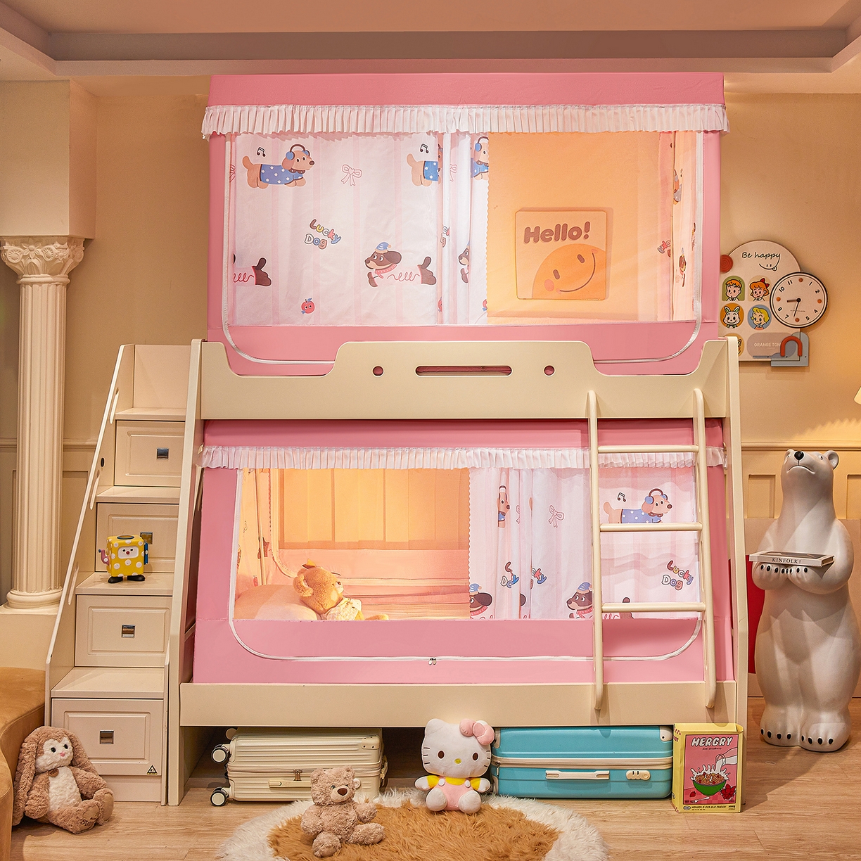 2025新款2502款美人狗烫画围栏级防摔外穿杆坐床蚊帐-场景二