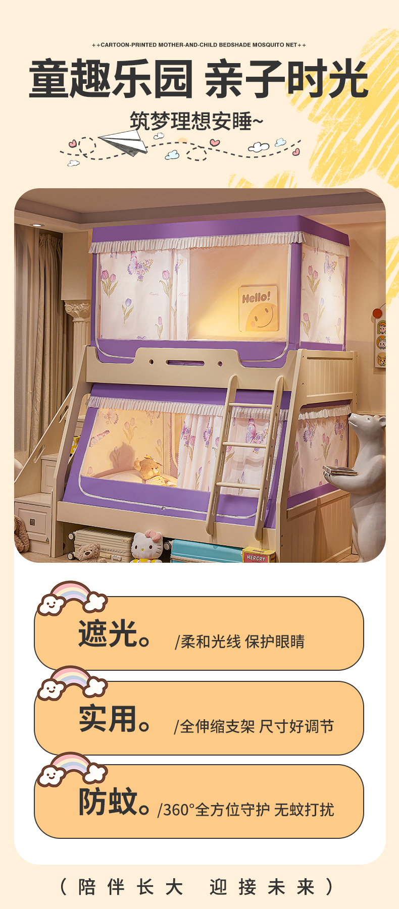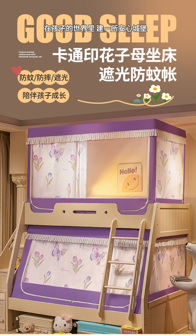 2024新款2407专版印花遮光帘上下铺子母蚊帐