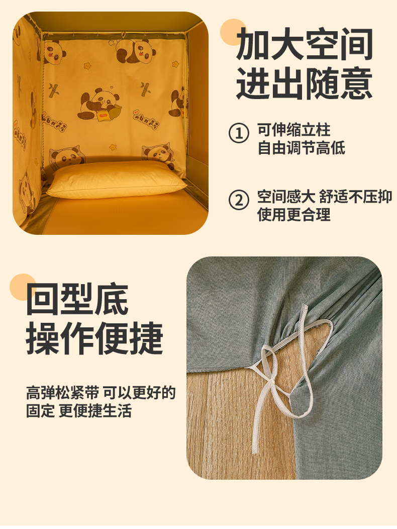 2024新款大熊猫外穿杆防摔坐床蚊帐