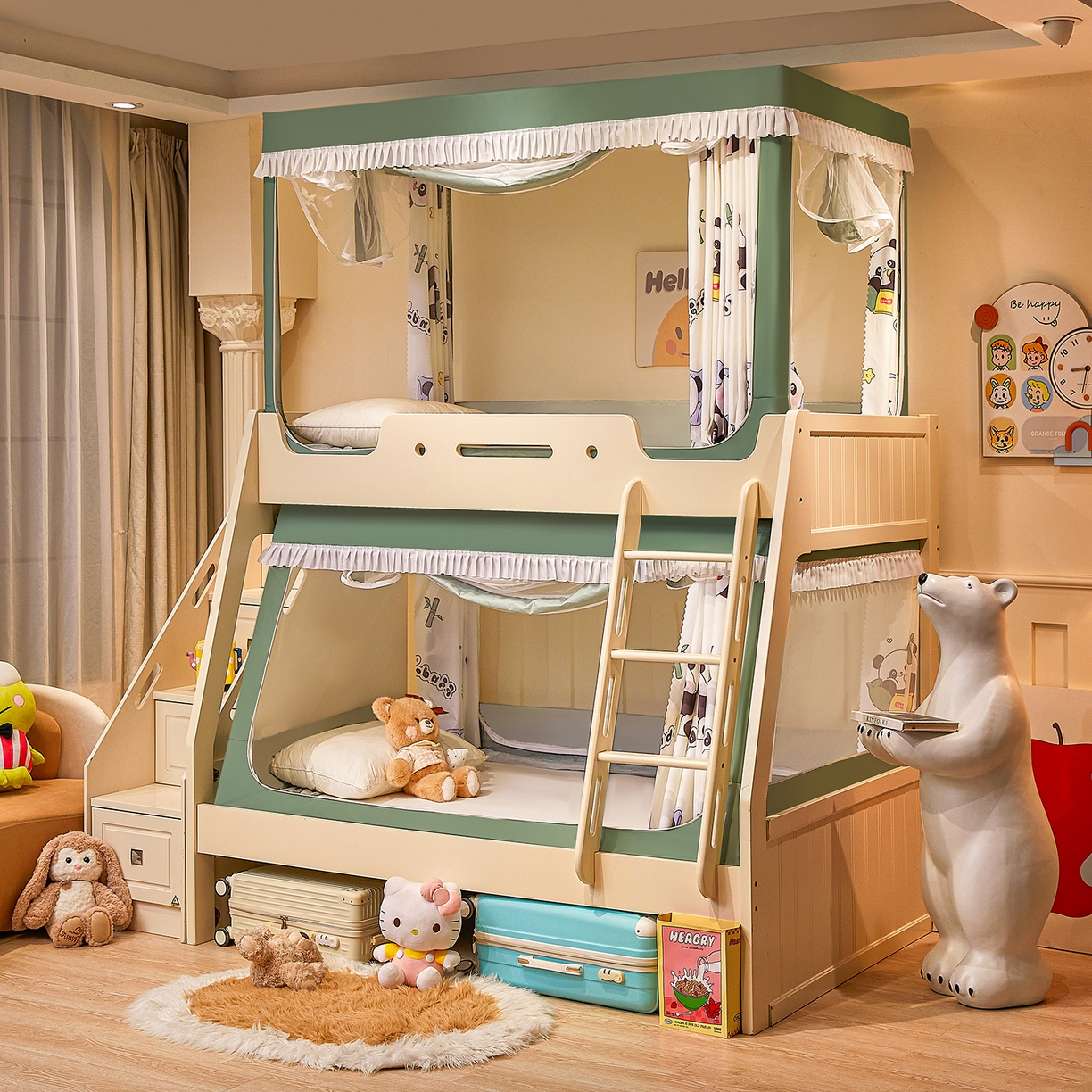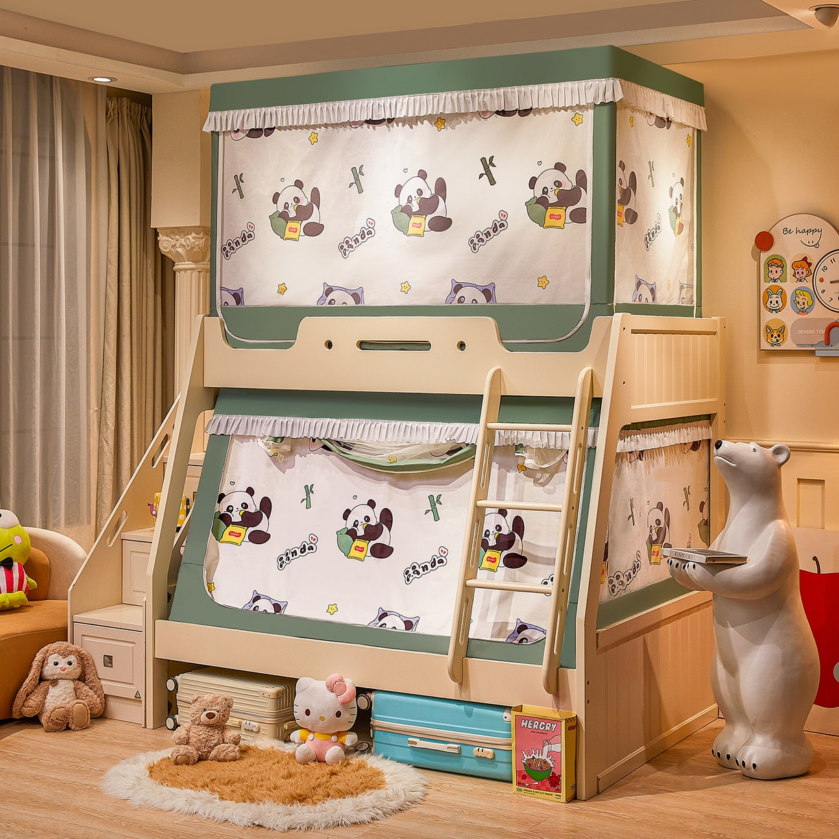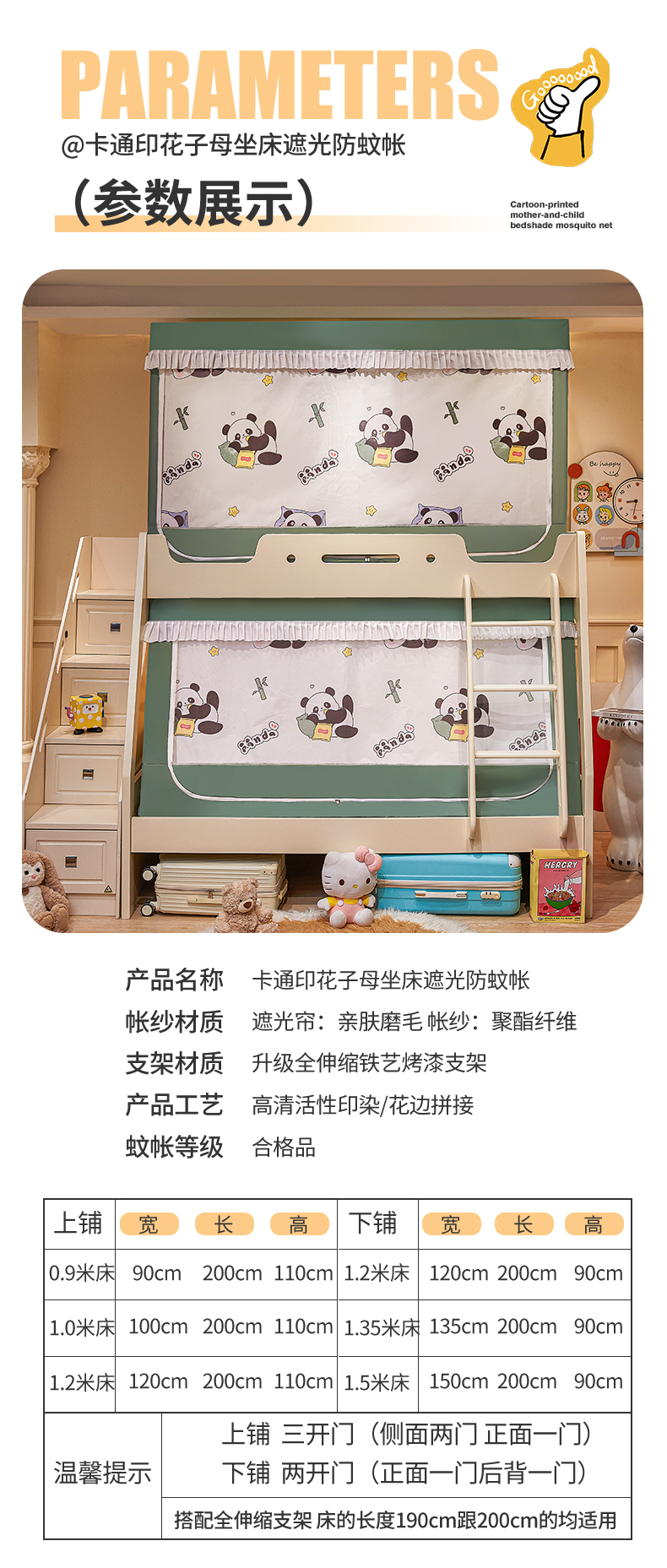 迪凡保罗蚊帐 2026新款全伸缩上下铺子母遮光帘蚊帐 休闲熊猫-有床帘