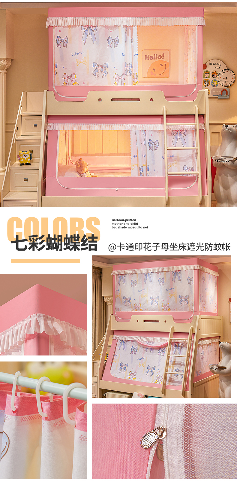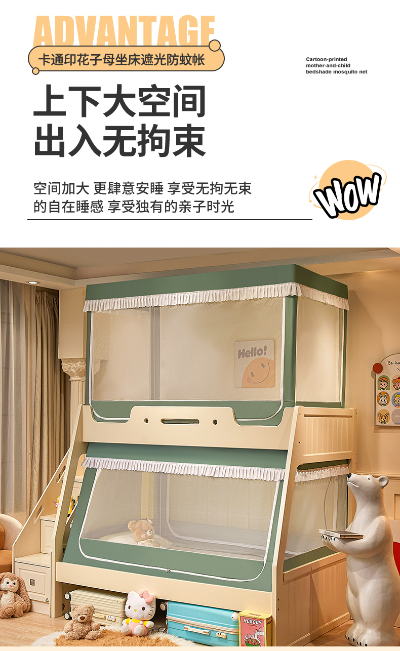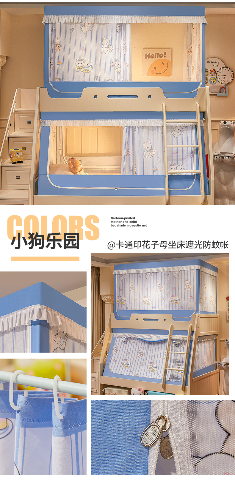 2024新款2407专版印花遮光帘上下铺子母蚊帐