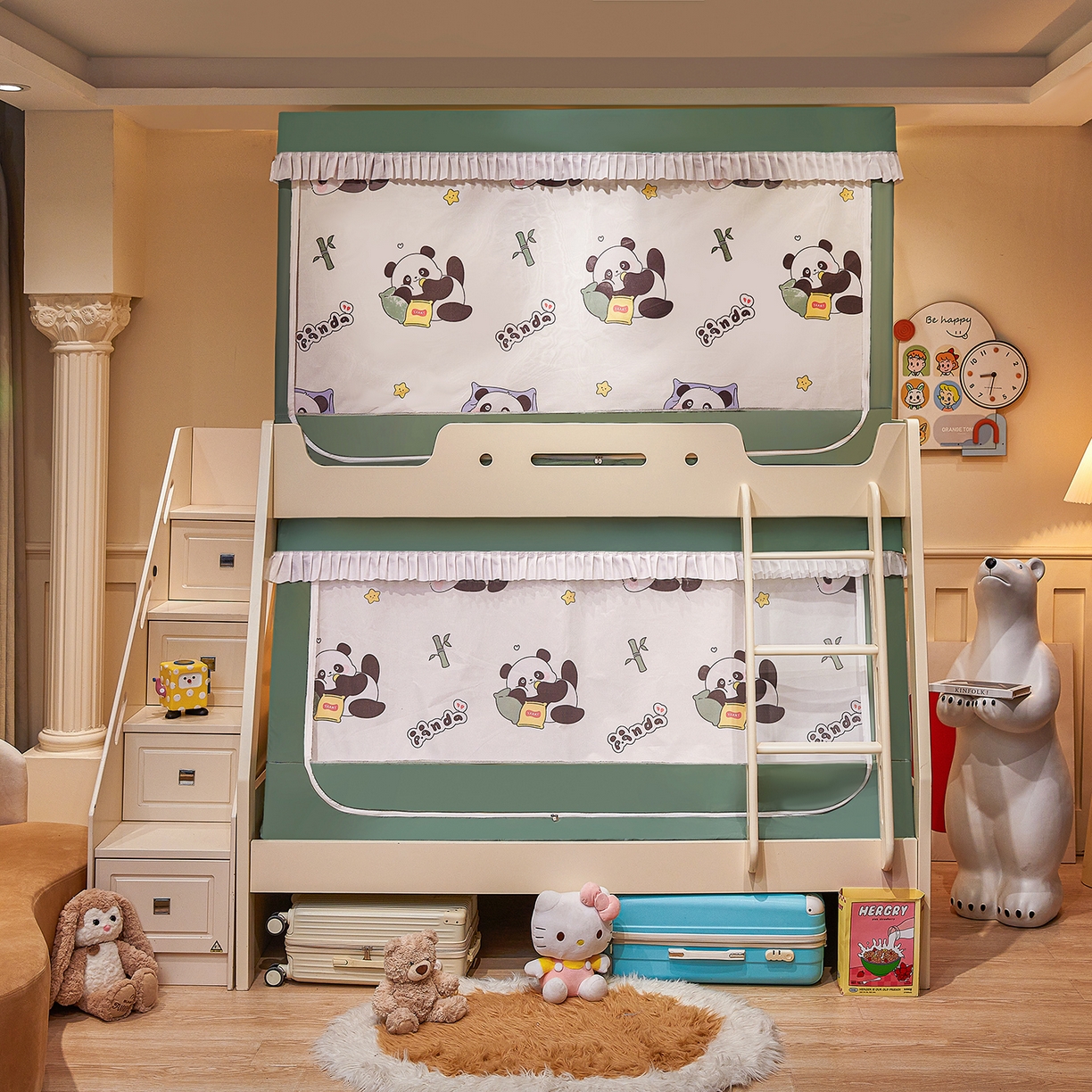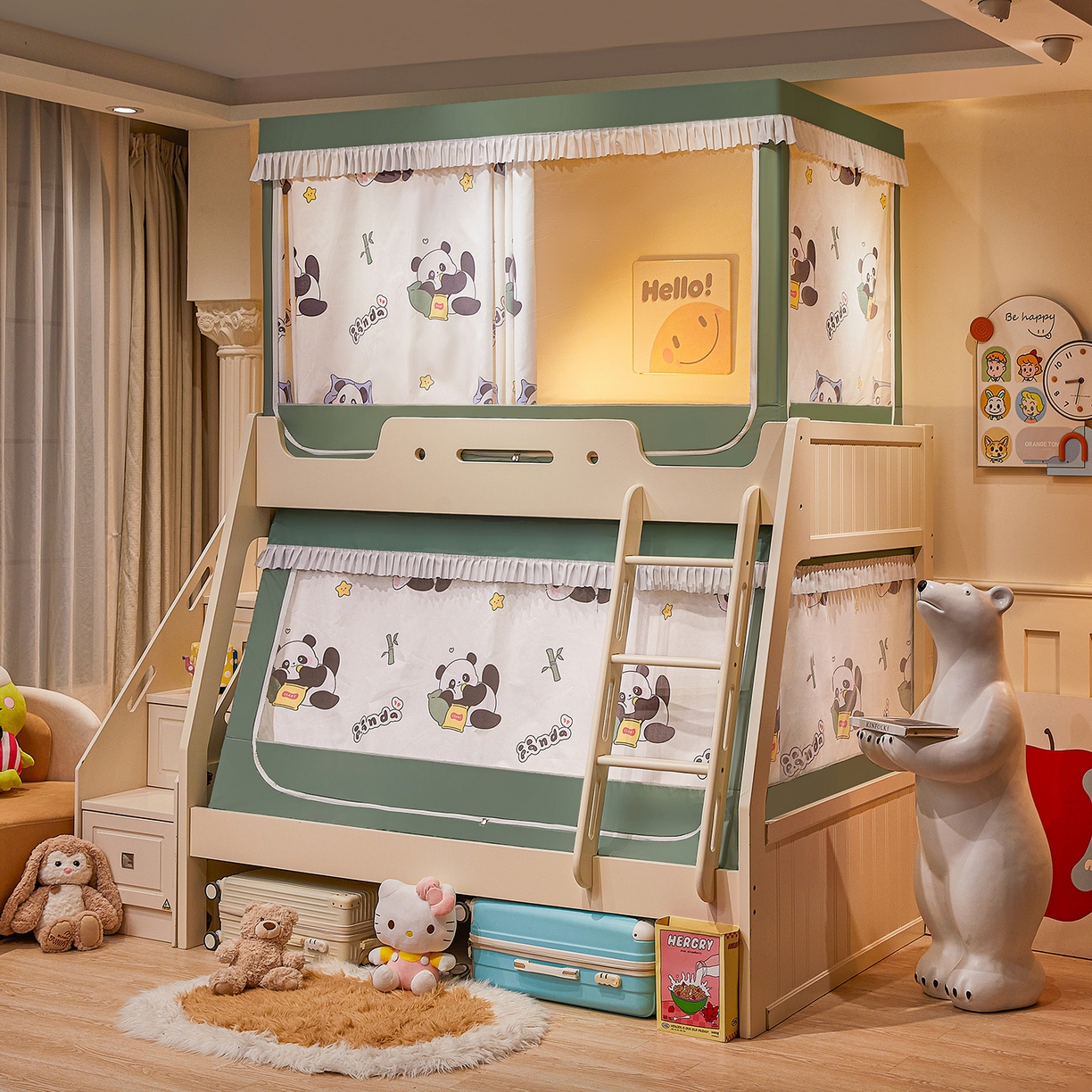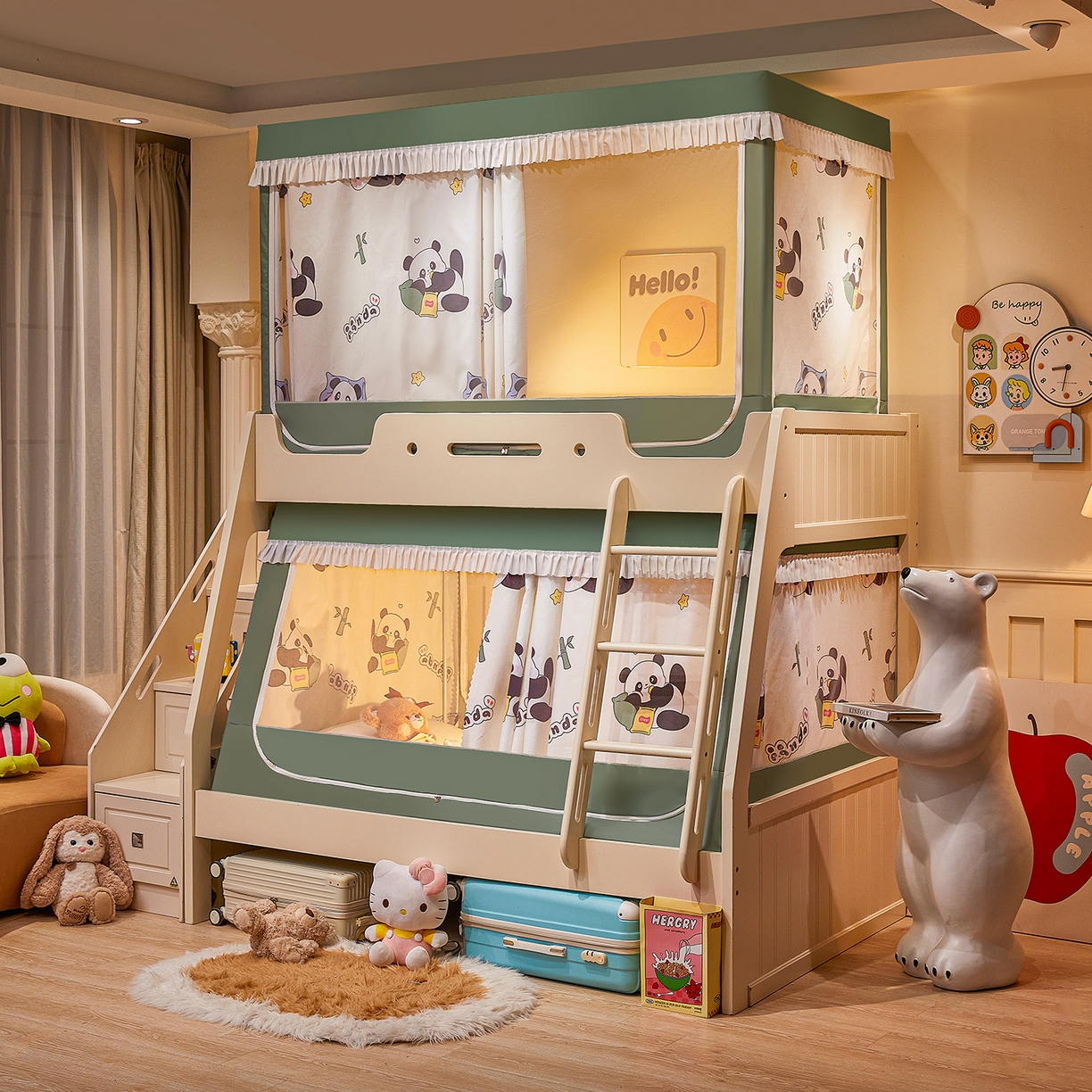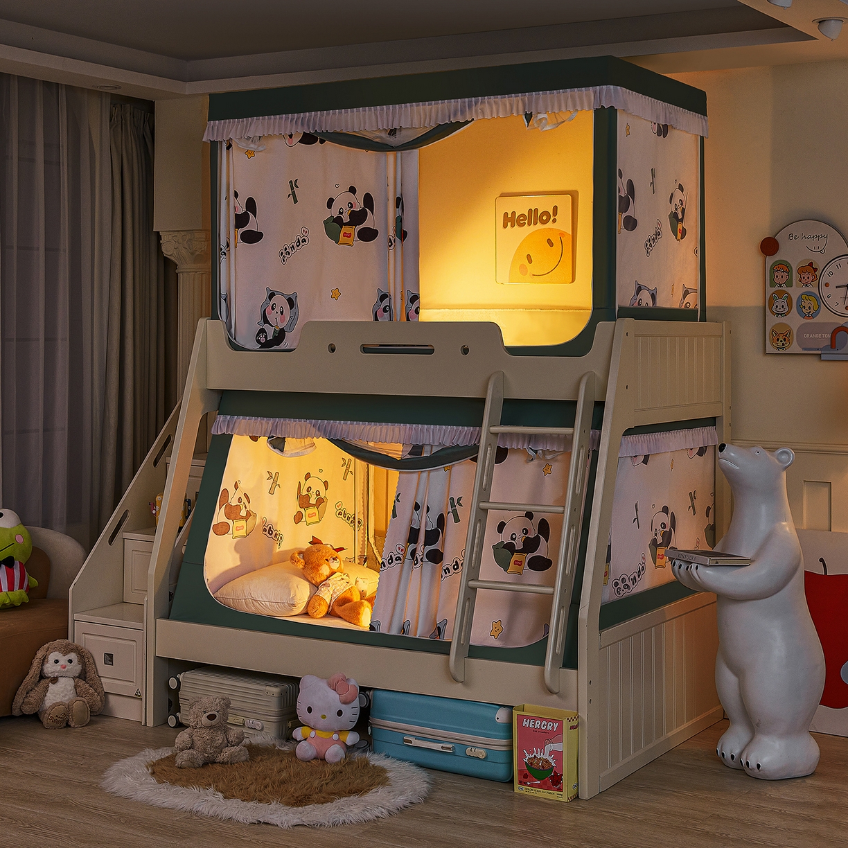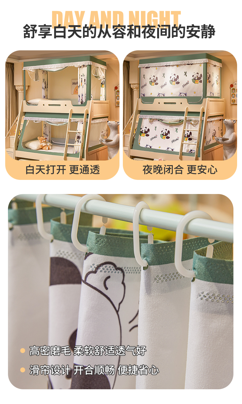 > 迪凡保罗蚊帐 2026新款全伸缩上下铺子母遮光帘蚊帐 休闲熊猫-有床帘