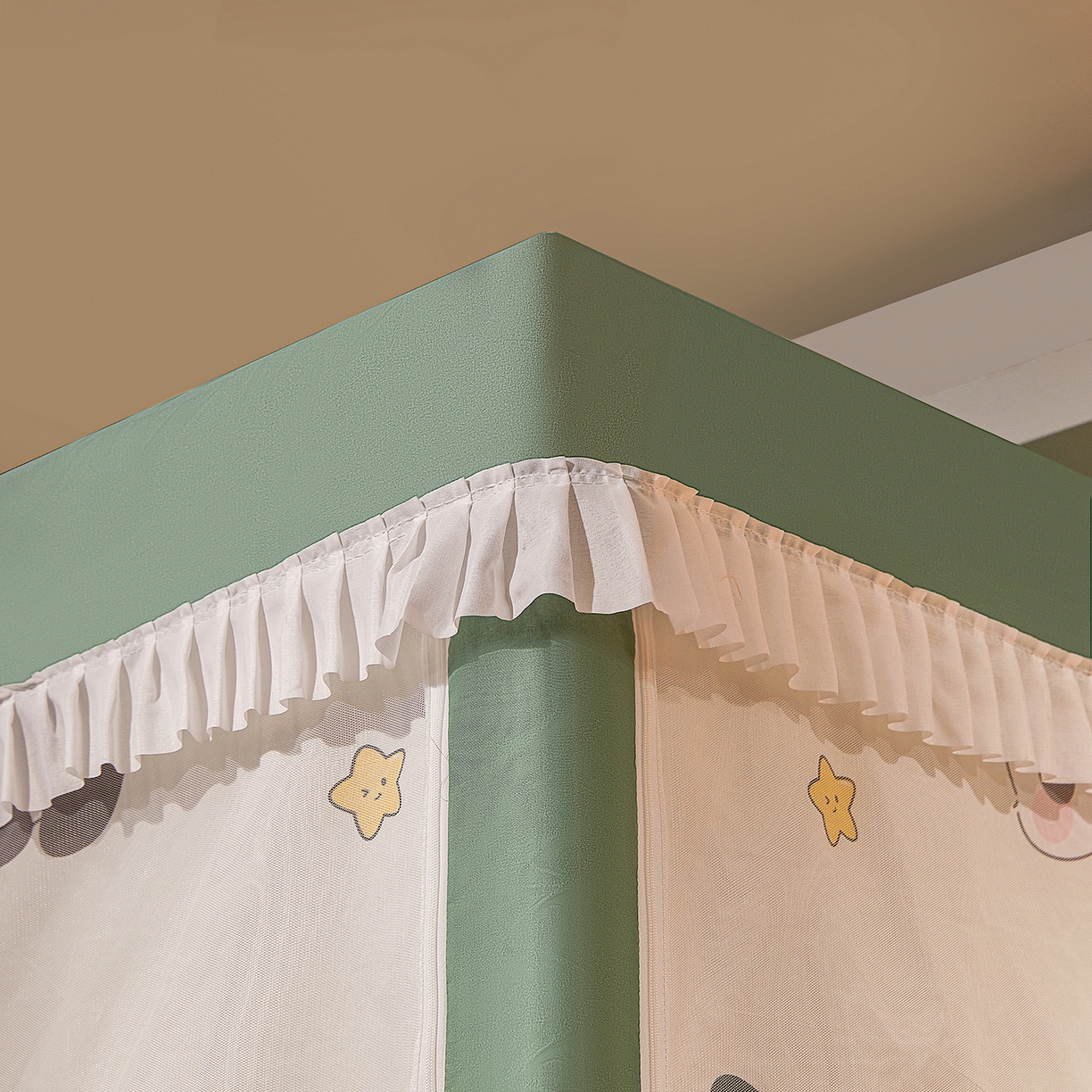2025新款2502款美人狗烫画围栏级防摔外穿杆坐床蚊帐-场景二