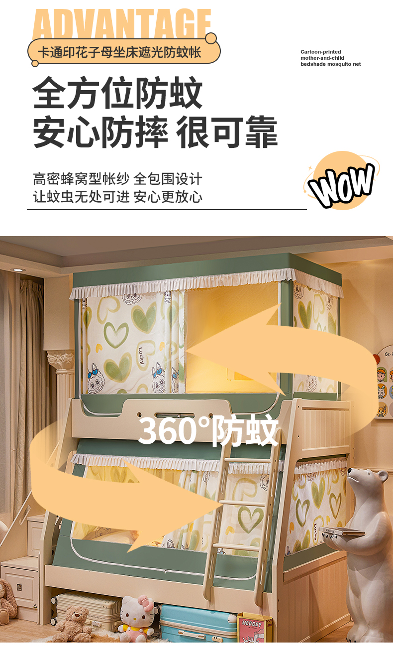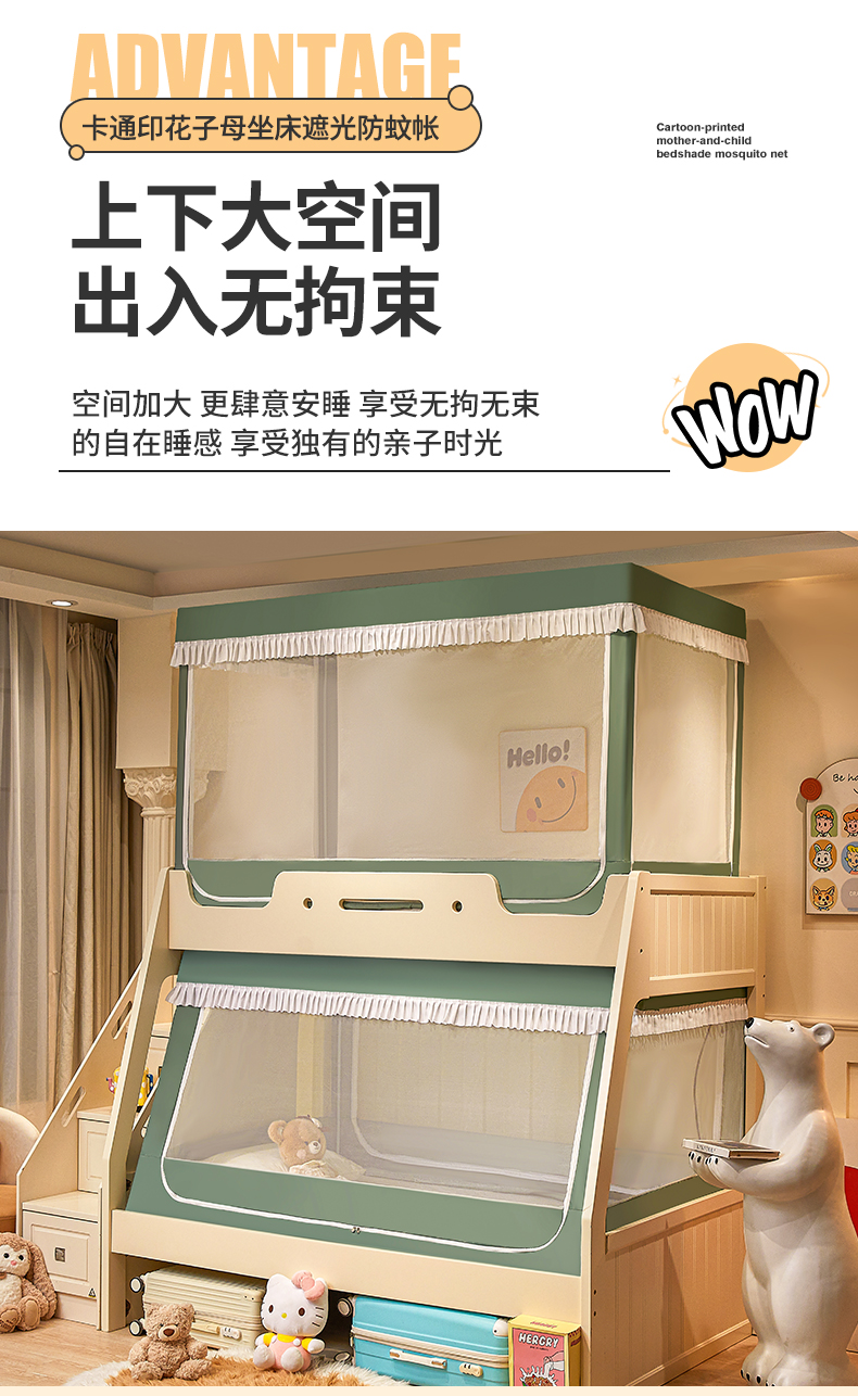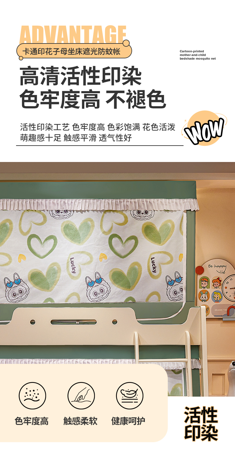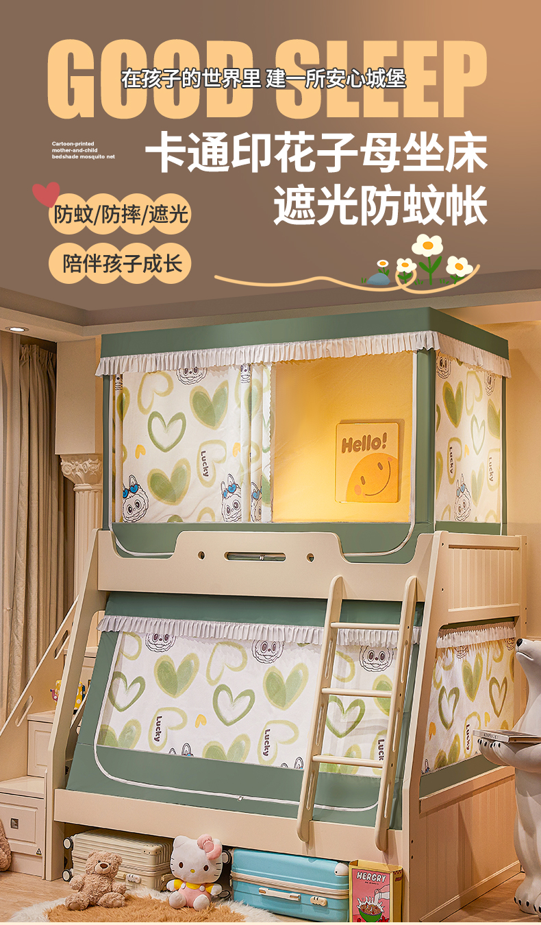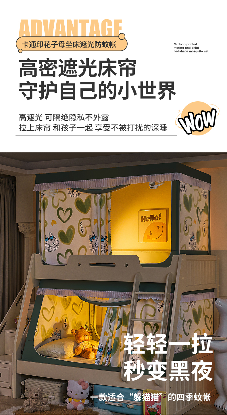 2024新款2407专版印花遮光帘上下铺子母蚊帐