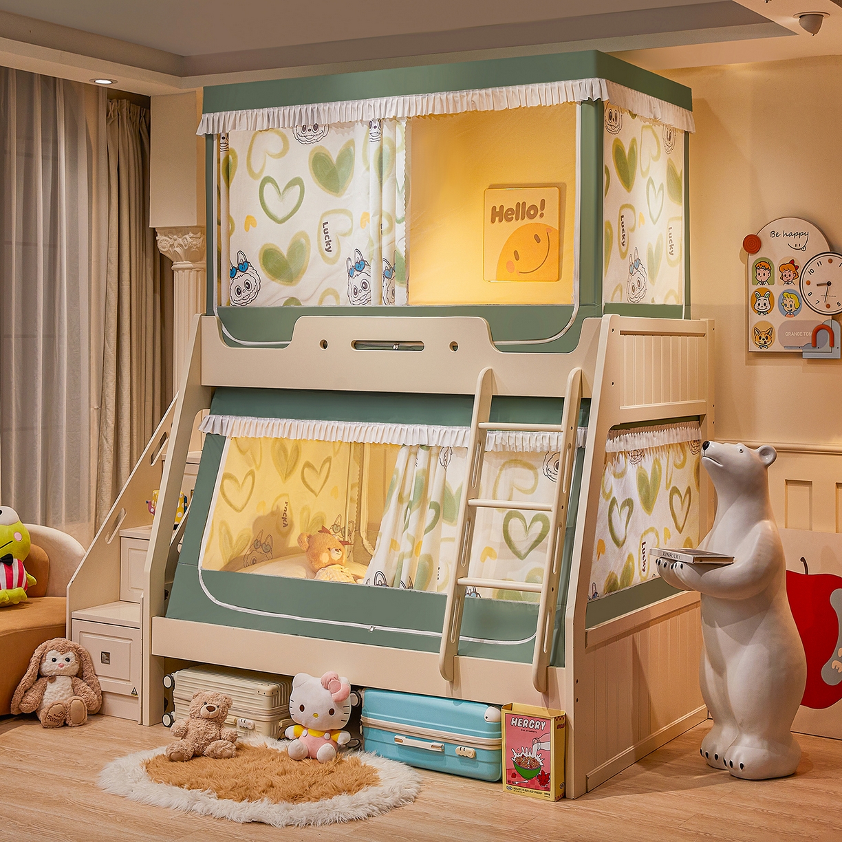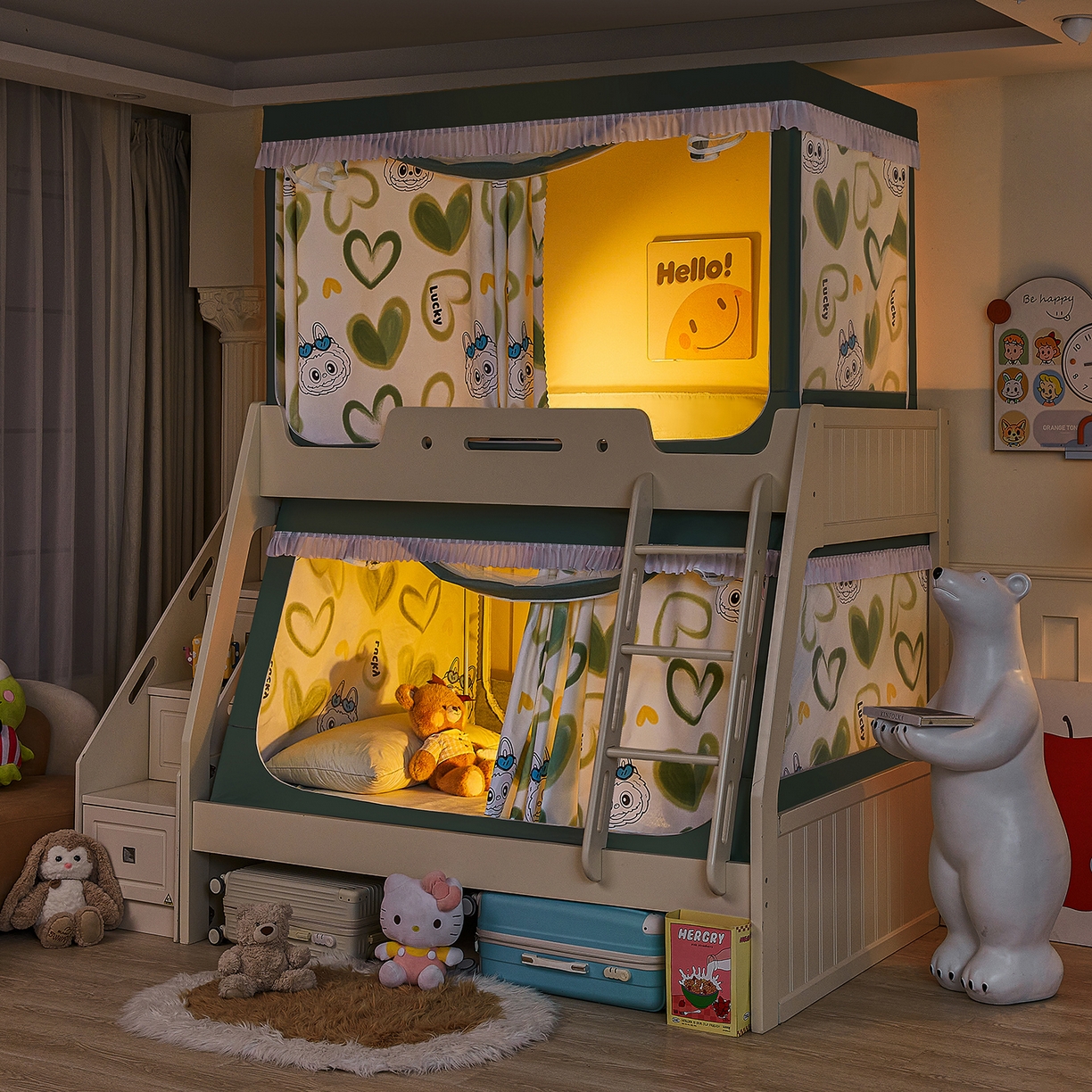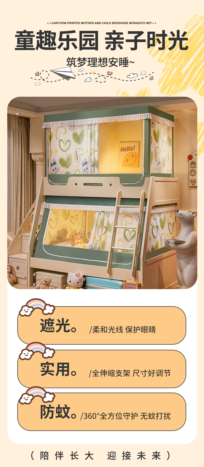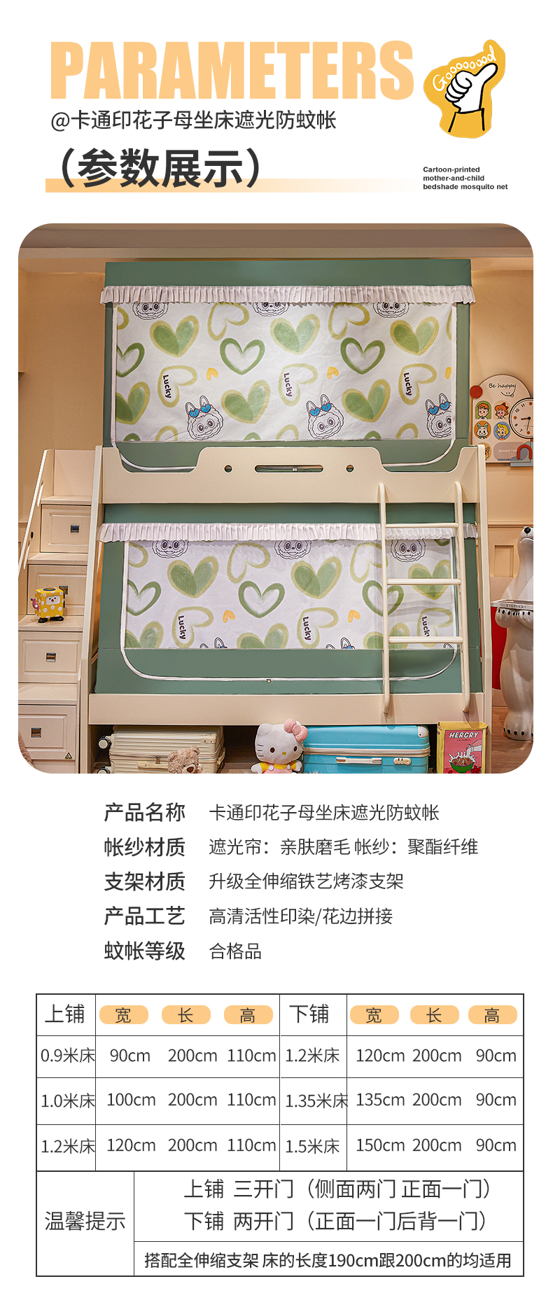迪凡保罗蚊帐 2026新款全伸缩上下铺子母遮光帘蚊帐 爱心酷布布-有床帘