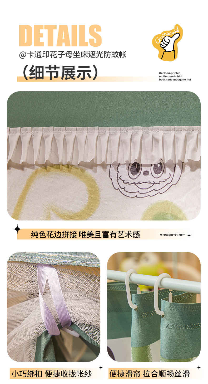 2026新款全伸缩上下铺子母遮光帘蚊帐