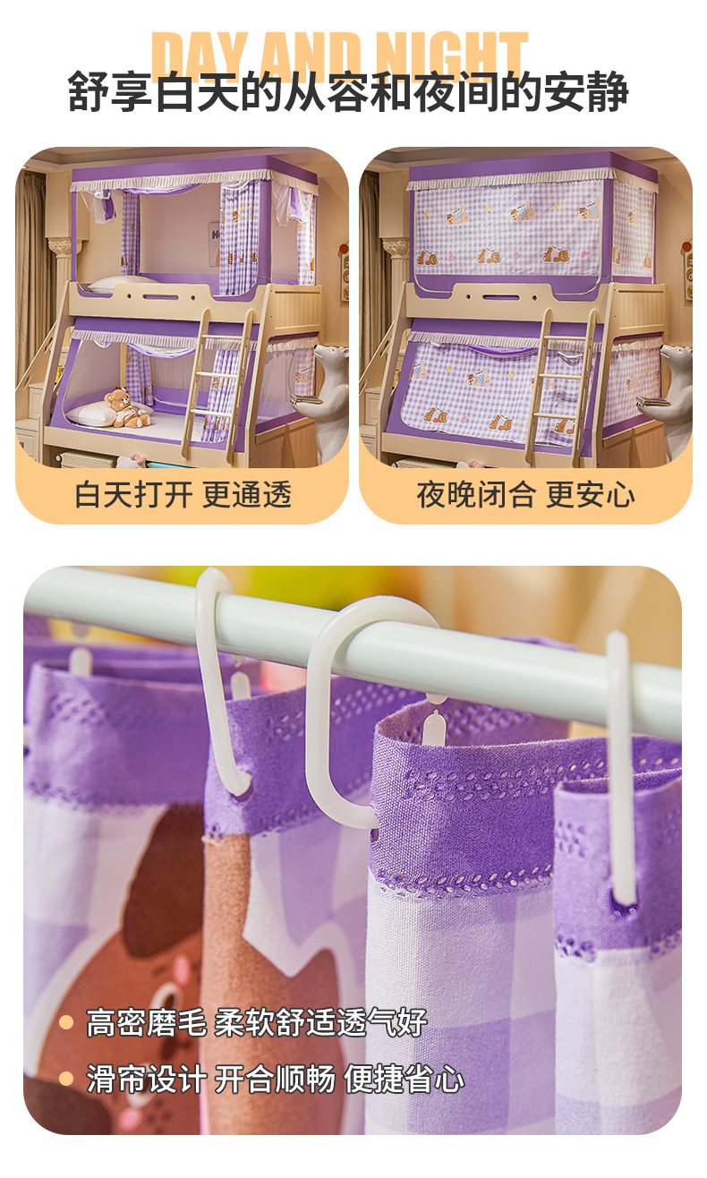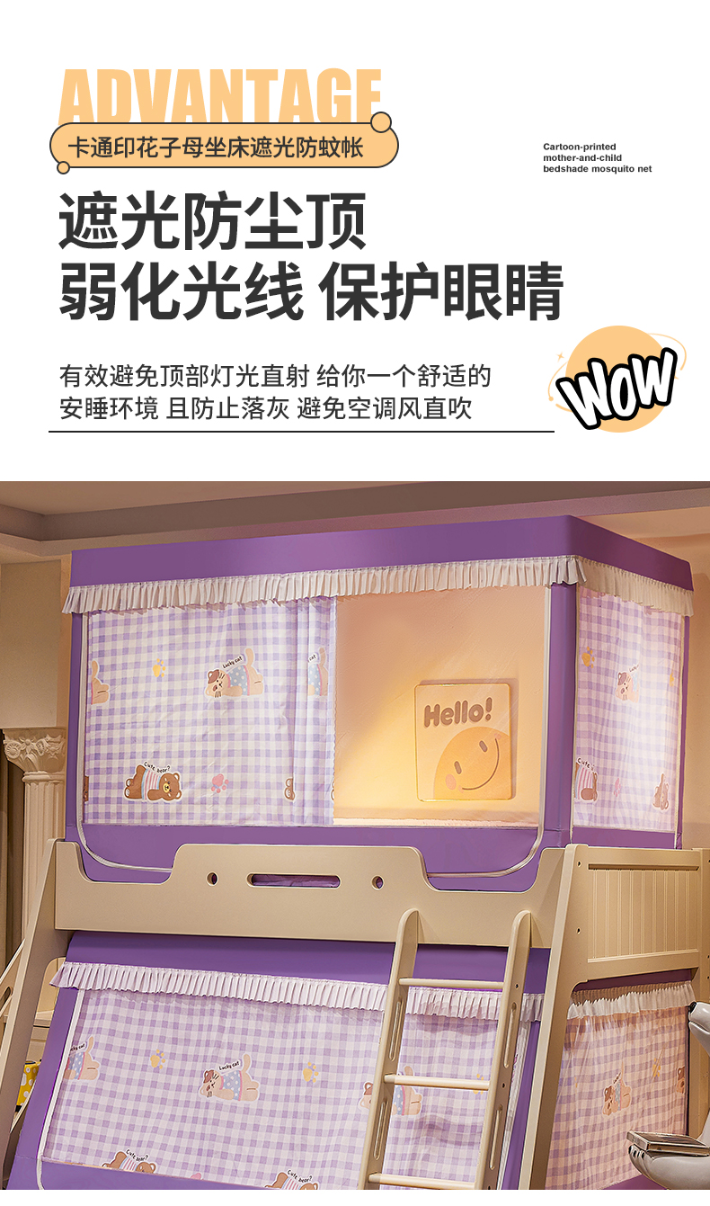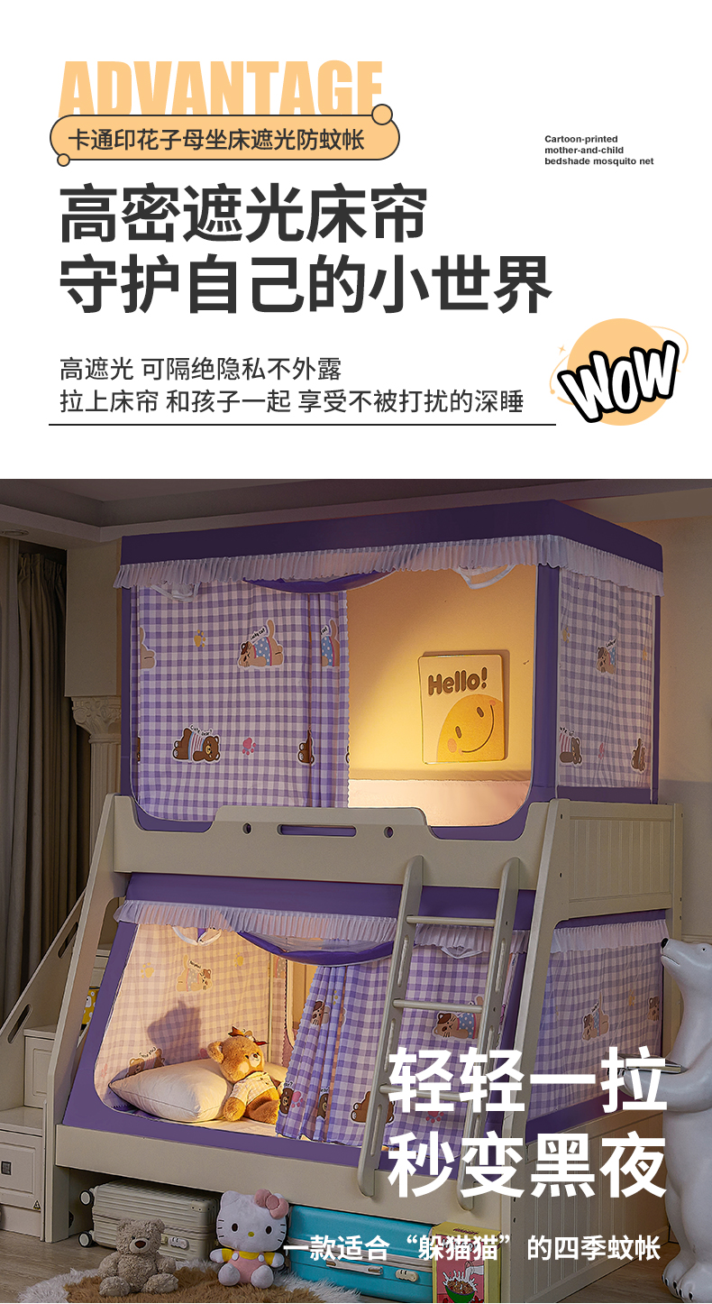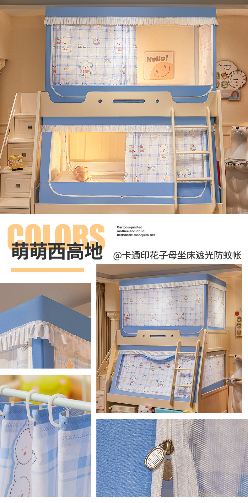 2024新款2407专版印花遮光帘上下铺子母蚊帐