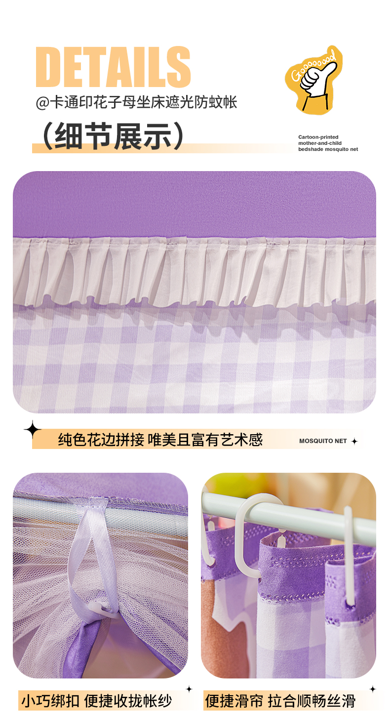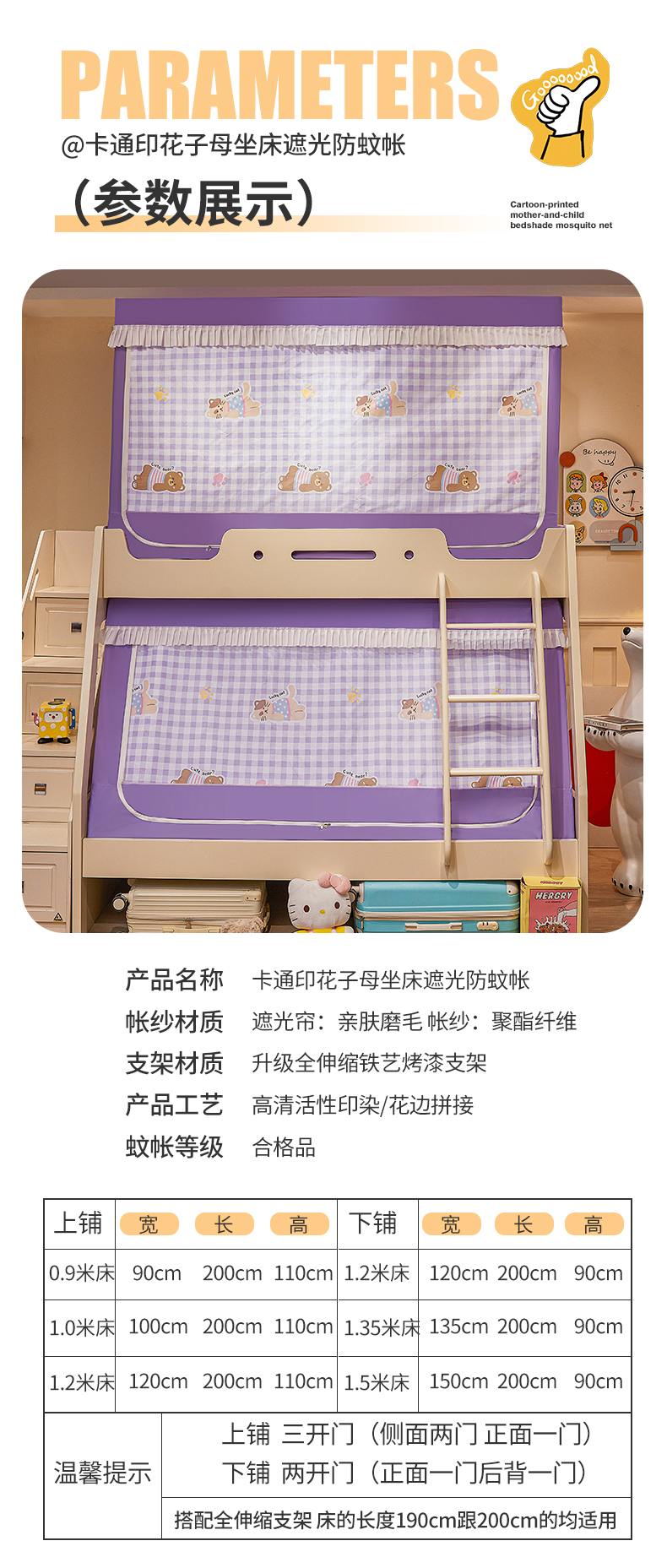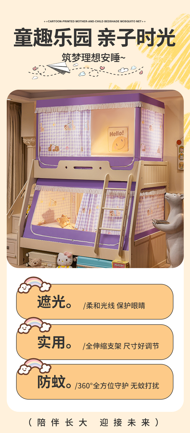 > 迪凡保罗蚊帐 2026新款全伸缩上下铺子母遮光帘蚊帐 可爱乐园-有床帘