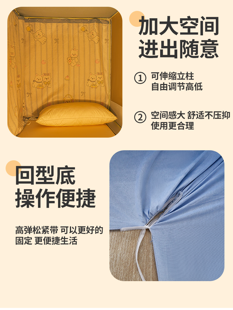 2024新款2415纳米环保加厚强遮光小清新学生蚊帐(自带靠墙帘)