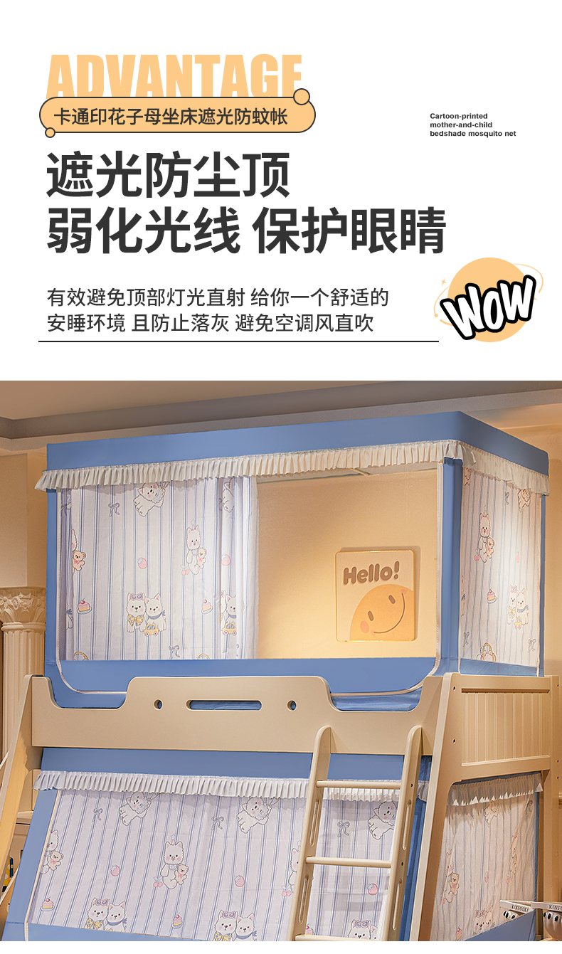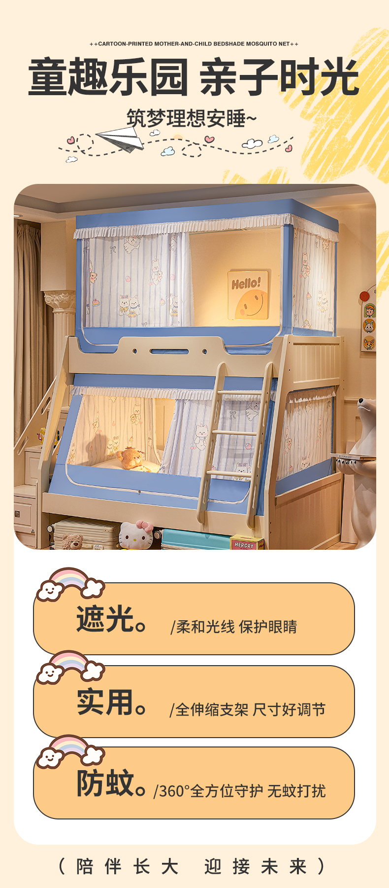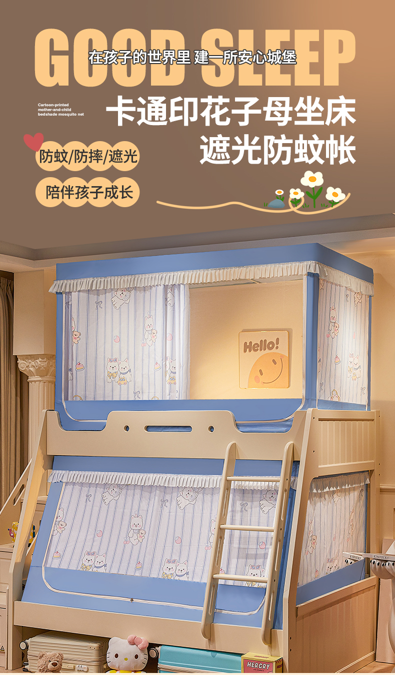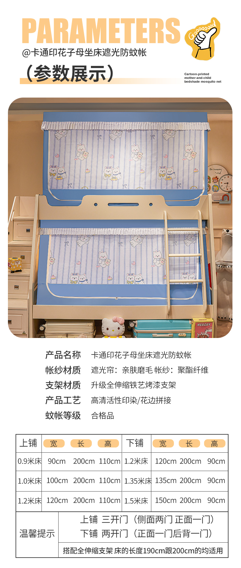 2024新款2407专版印花遮光帘上下铺子母蚊帐