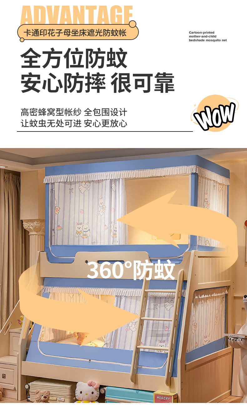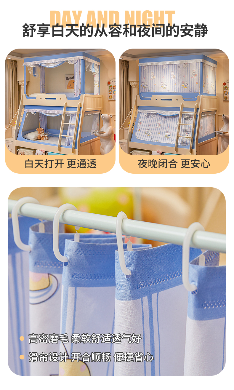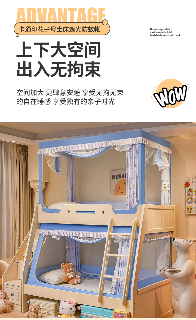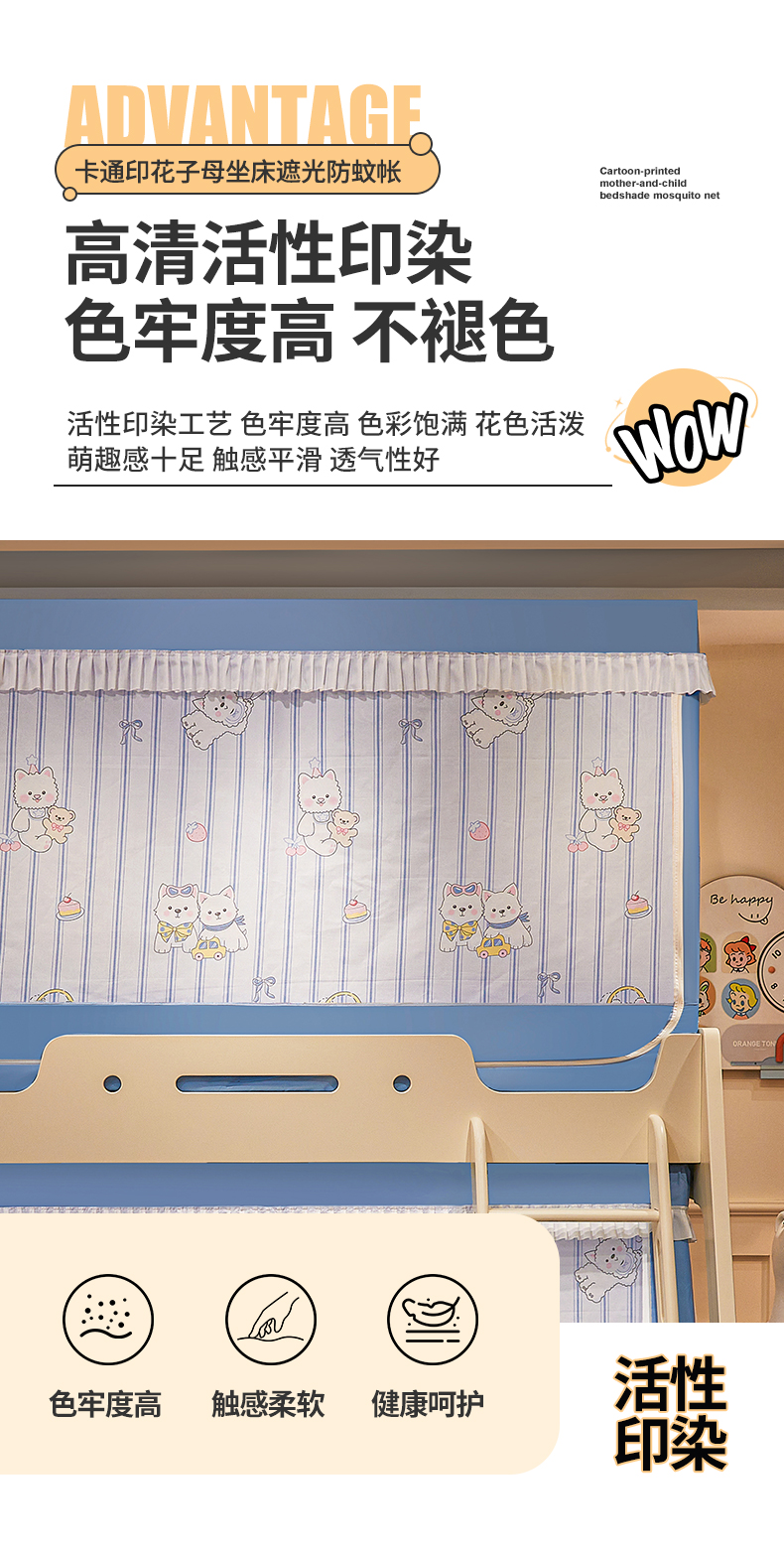 2024新款2407专版印花遮光帘上下铺子母蚊帐