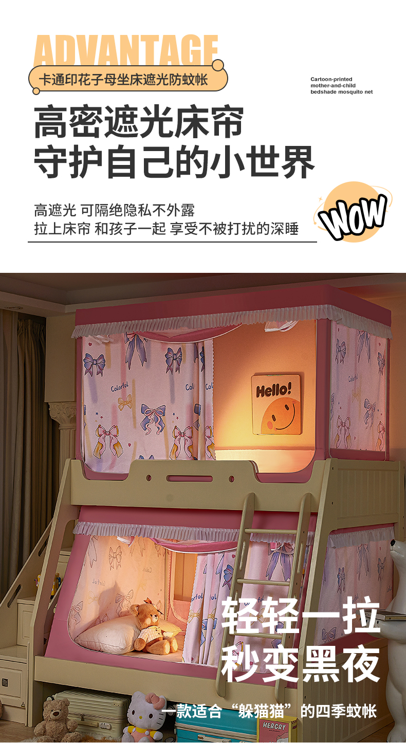 2024新款2407专版印花遮光帘上下铺子母蚊帐
