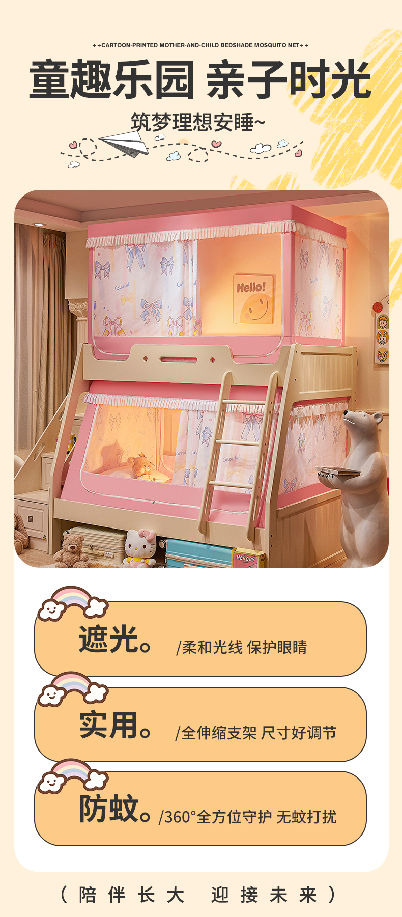 2026新款全伸缩上下铺子母遮光帘蚊帐