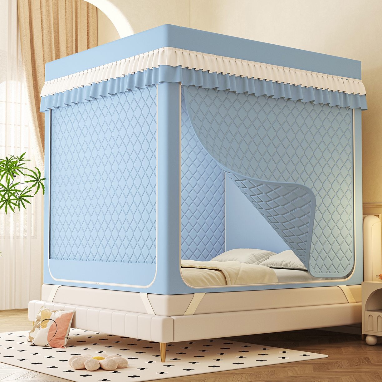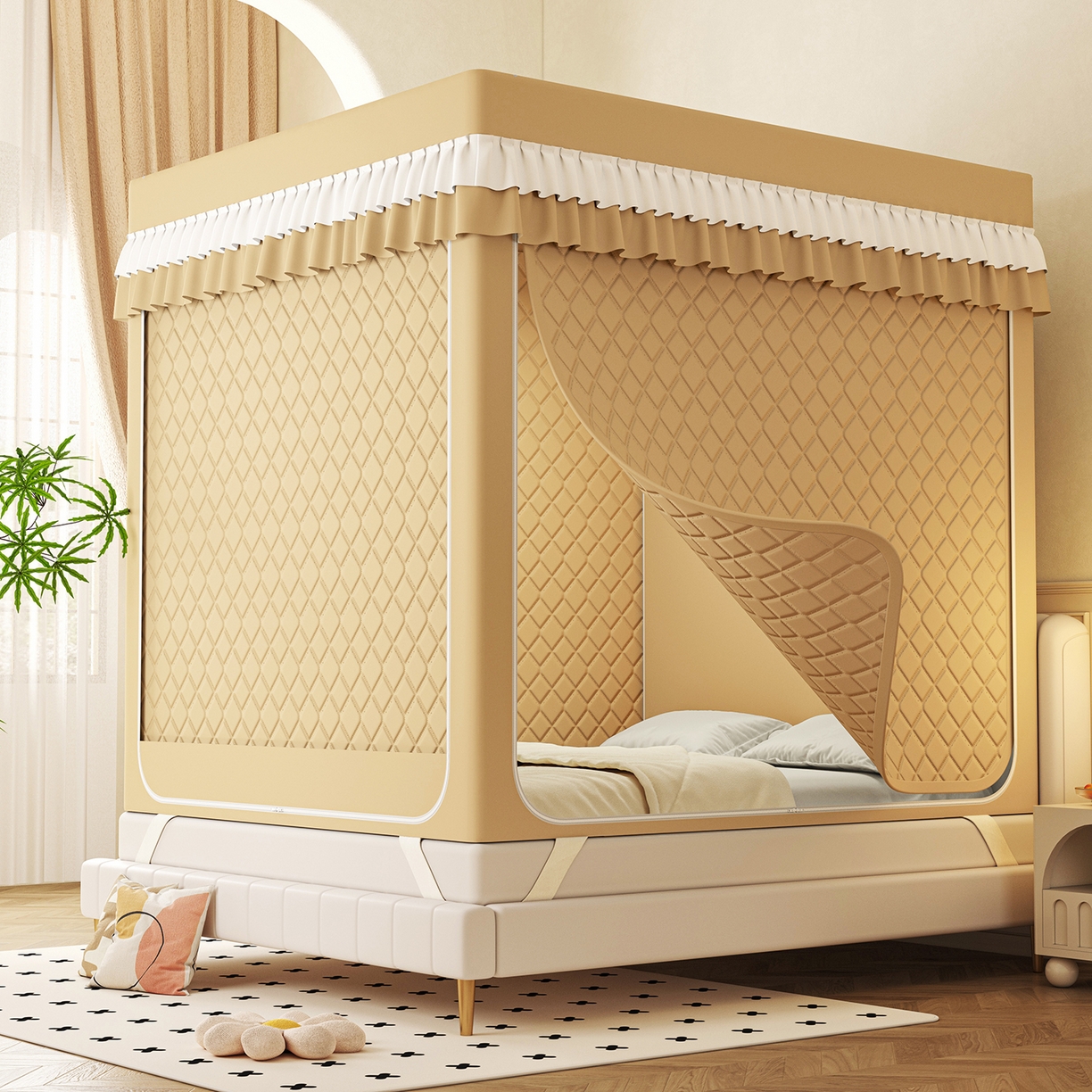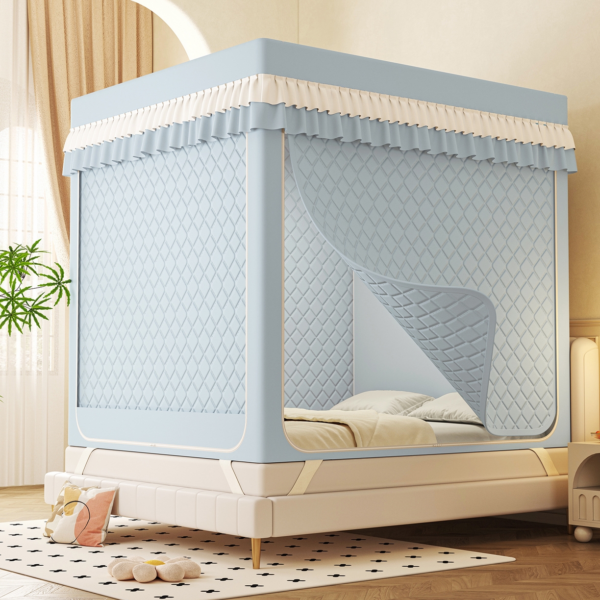2025新款2506纯色夹棉遮光保暖坐床蚊帐